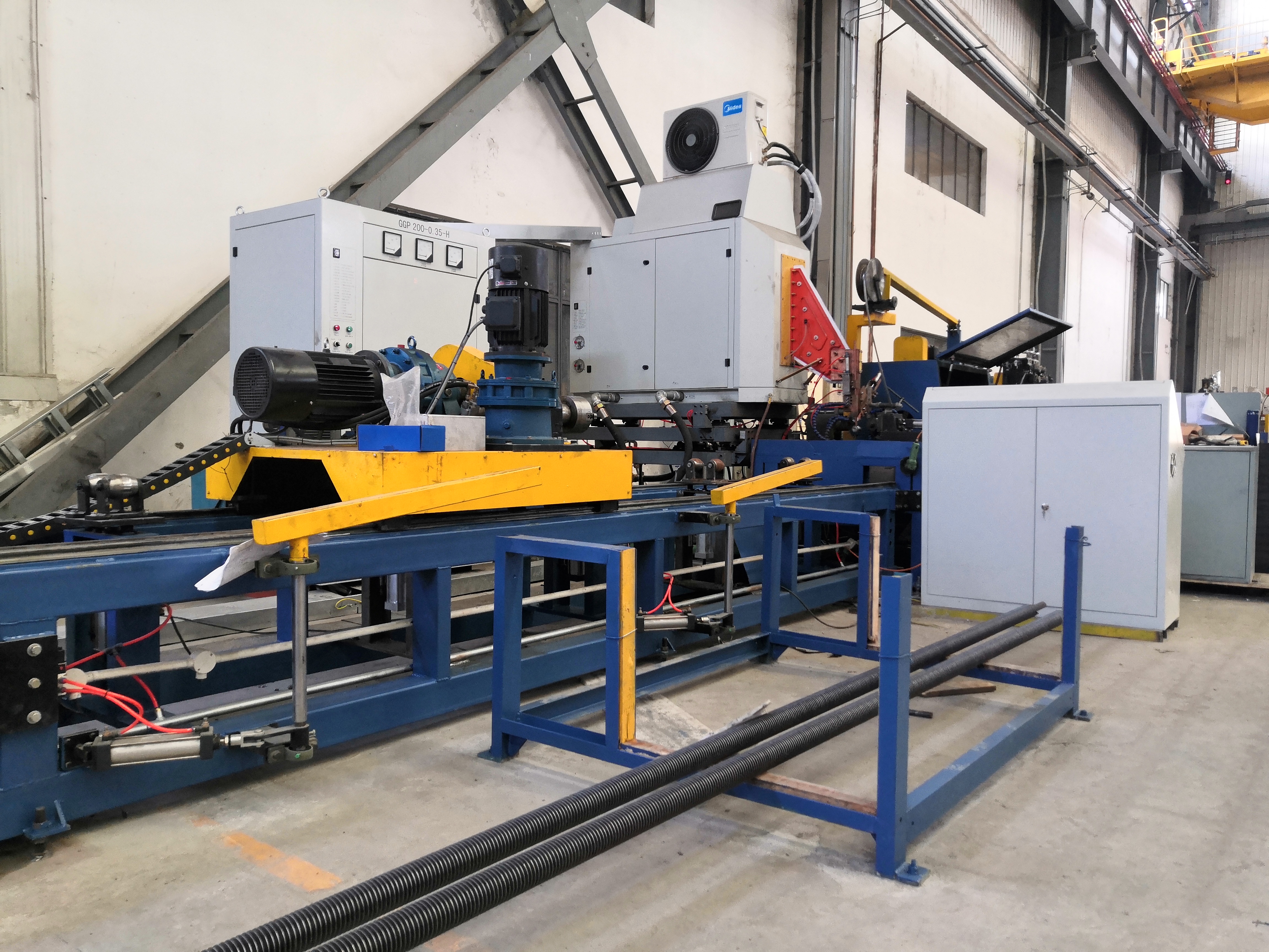 本生產(chǎn)線實(shí)現(xiàn)了鋼帶自動(dòng)開(kāi)卷、自動(dòng)矯平、自動(dòng)送帶、自動(dòng)沖片、自動(dòng)焊接整個(gè)全自動(dòng)流程